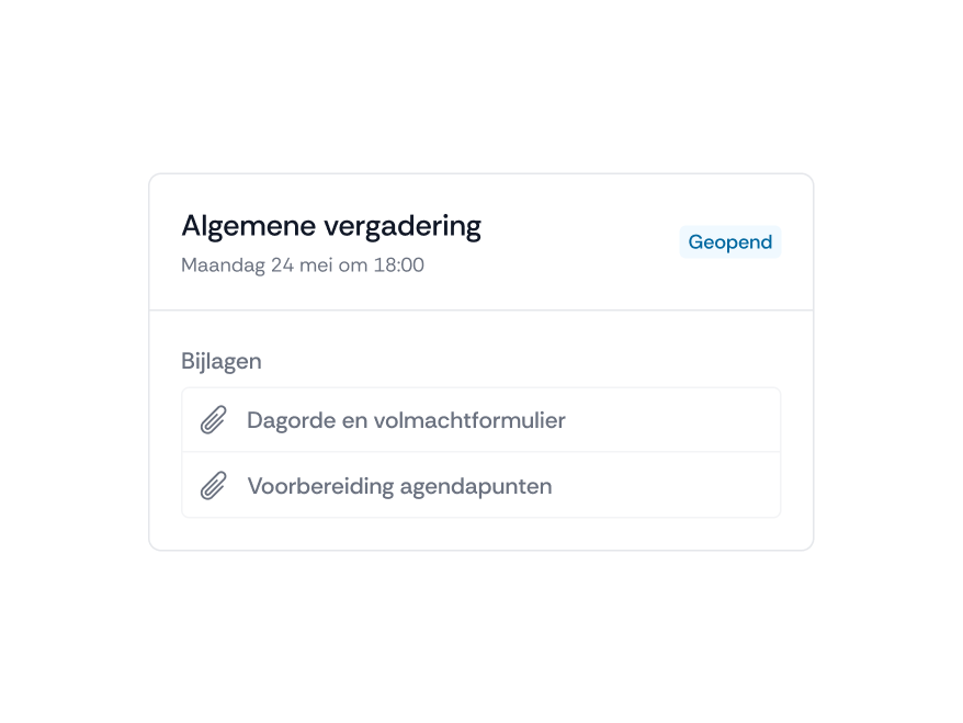 “De algemene vergadermodule helpt echt om overzicht te houden op wat er moet gebeuren. Je ziet makkelijk welke verplichtingen er zijn en wie wat moet regelen. Dat scheelt een hoop gedoe.”