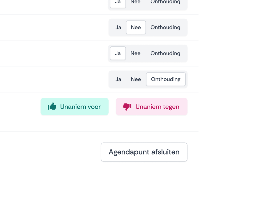 Geen dagen meer wachten: krijg na de vergadering direct het volledige vergaderverslag, inclusief notulen en stemresultaten.